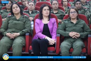 واختتمت الرئيسة المشتركة للمجلس التنفيذي في الإدارة الذاتية كلمتها، بالتأكيد على دعم الإدارة الذاتية الكامل لكل جهد يسهم في تعزيز تنظيم المرأة الحرة وترسيخ موقعها الطليعي في ميادين الدفاع والبناء، وقالت :”نجاحكن هو نجاح لمجتمعنا بأسره، وخطوة إضافية نحو سوريا ديمقراطية، حرة، تعددية، تقوم على المساواة والعدالة.”
