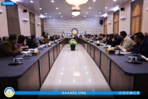 عقد المجلس التنفيذي في الإدارة الذاتية الديمقراطية لإقليم شمال وشرق سوريا، يوم الإثنين، اجتماعاً موسعاً ضمَّ الرئاسات المشتركة للمجالس التنفيذية وممثلين عن هيئات ومكاتب المالية في المقاطعات، إلى جانب حضور الهيئة الرئاسية لمجلس الشعوب الديمقراطي والرئاسة المشتركة لهيئة المالية العامة.