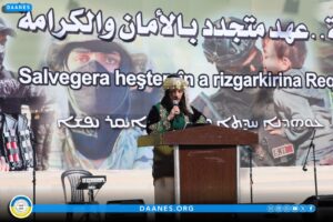 وألقت جهان محمد كلمة باسم مجلس تجمع نساء زنوبيا، وزهرة اليوسف كلمة باسم مجلس عوائل الشهداء عبَّرتا فيهما عن فخر أهالي الرقة بما تحقق من إنجازات خلال السنوات الماضية بفضل تضحيات أبنائهم.