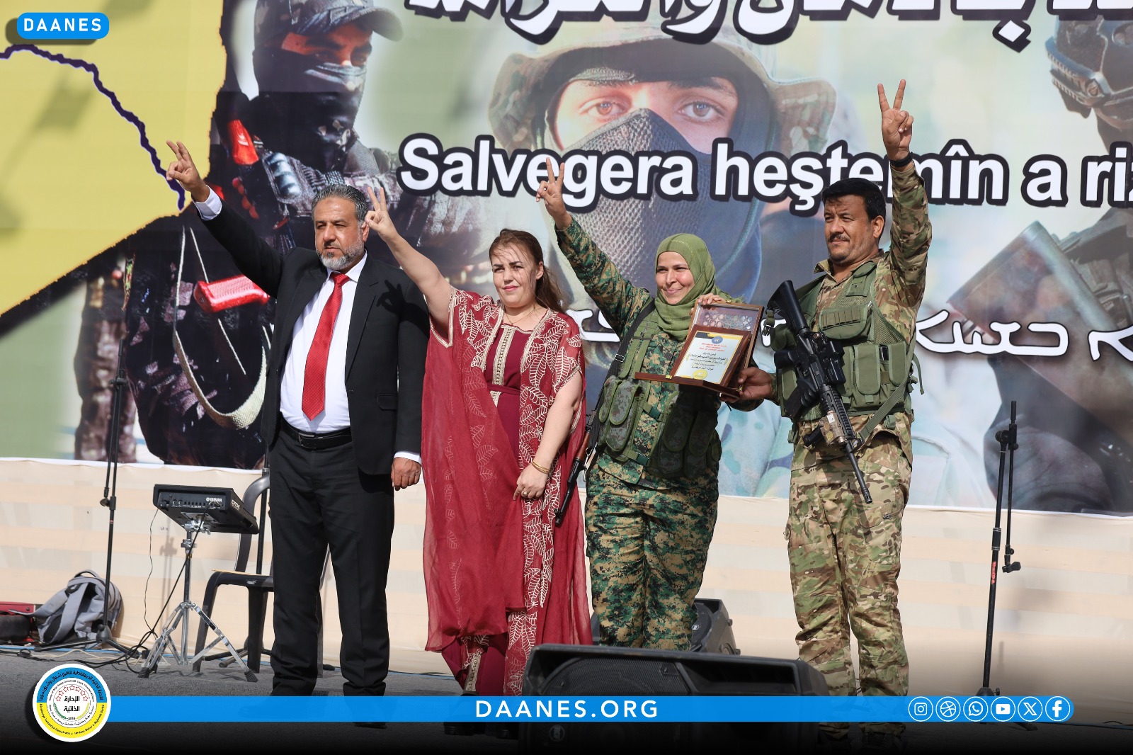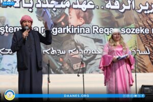 كما تضمن الحفل فقرات فنية وتراثية أحيتها فرقة درة الفرات وفرقة هيلين جودي، إلى جانب عروض دبكة شعبية وأغانٍ وطنية قدَّمها الفنانان آيجان كوباني وطلحت.