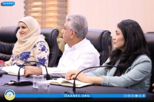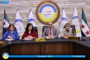 عقد المجلس التنفيذي في الإدارة الذاتية الديمقراطية لإقليم شمال وشرق سوريا، الأربعاء، اجتماعه الدوري، بحضور الهيئة الرئاسية للمجلس التنفيذي، والرئاسات المشتركة لهيئات ودوائر ومكاتب الإدارة الذاتية، والمجالس التنفيذية في المقاطعات.