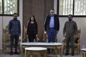 وعقب الاجتماع، التقى أعضاء الهيئة الرئاسية لدائرة الإعلام بالرئيس المشترك للمجلس التنفيذي في الإدارة الذاتية الديمقراطية لمقاطعة الفرات، فرحان حج عيسى، ونائبه كانيوار إسماعيل، اللذين رحَّبا بالزيارة، وتبادلوا النقاش حول واقع المنطقة ومستوى العمل الإعلامي وسبل تطويره والارتقاء به إلى مستويات أفضل لمواكبة المرحلة الراهنة.
