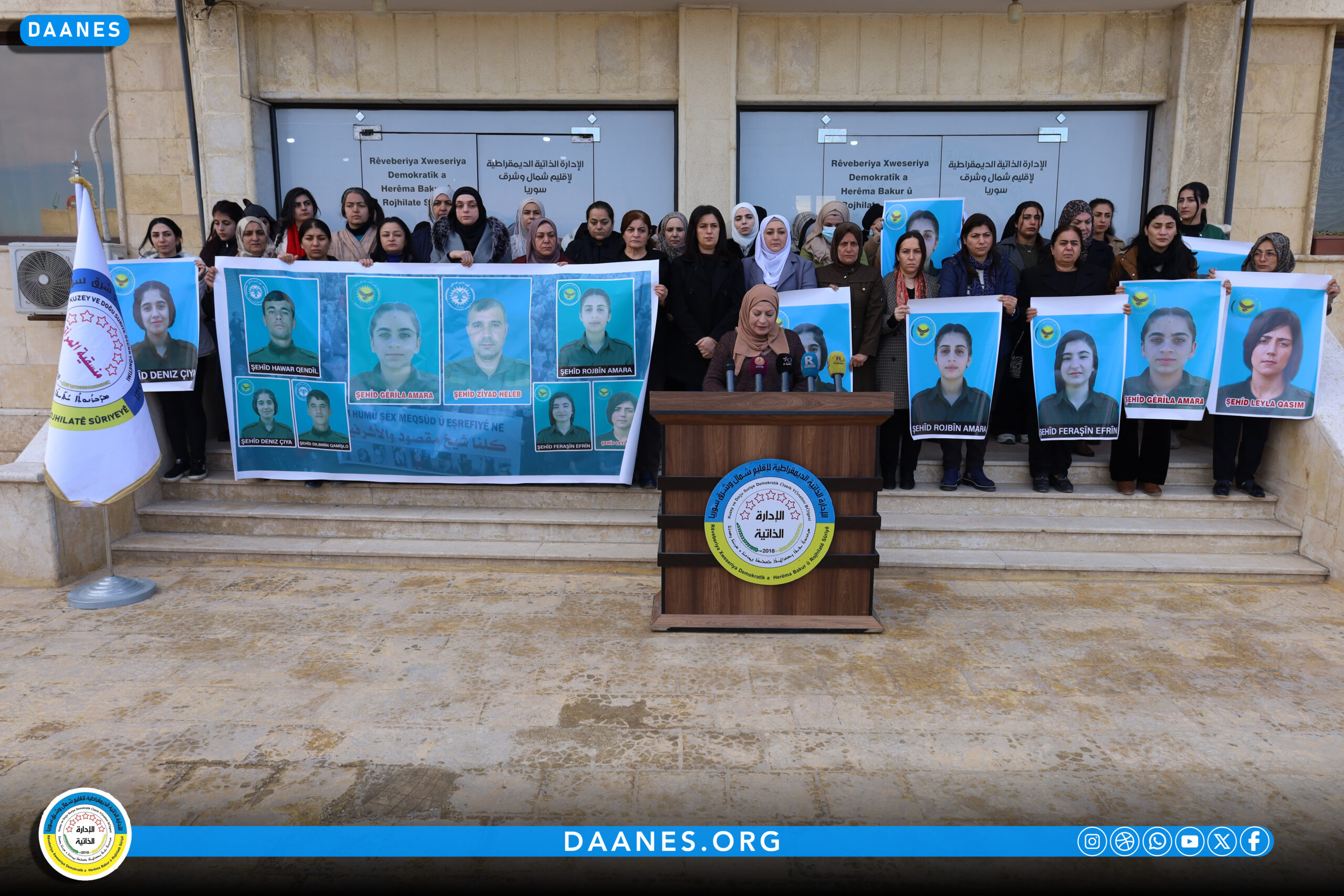 إننا في منسقية المرأة بالإدارة الذاتية الديمقراطية، ندين بأشد العبارات جريمة التمثيل بالجثث والانتهاك الصارخ لحرمة الموتى، وهي جرائم مُجرّمة بموجب اتفاقيات جنيف، كما نستنكر بشدة جريمة الإخفاء القسري التي طالت مئات المدنيين وأعضاء قوى الأمن الداخلي، ونطالب الحكومة المؤقتة بالكشف الفوري عن مصيرهم وضمان سلامتهم، انسجامًا مع أحكام الاتفاقية الدولية لحماية جميع الأشخاص من الاختفاء القسري.