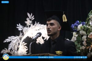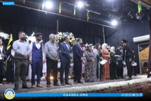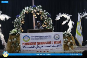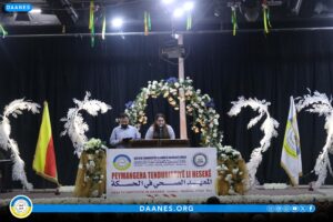 وألقى الرئيس المشترك لهيئة الصحة في مقاطعة الجزيرة، الدكتور ممو خليل ، كلمةً هنأ فيها الطلاب بتخرجهم، مؤكداً أن وجود كوادر صحية يعزز قدرة المجتمع على الصمود والبناء. وتلتها كلمة باسم مجلس عوائل الشهداء ألقتها عزيزة محمد والدة الشهيد شيرو، أكدت فيها على أهمية مواصلة السير على نهج الأمة الديمقراطية وصون دماء الشهداء، مشيرة إلى أن البلاد اليوم بأمسّ الحاجة إلى الكوادر الصحية في هذه المرحلة الحساسة.