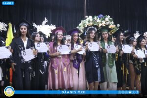 نظم المعهد الصحي في مدينة الحسكة، السبت، حفل تخريج الدفعة الثالثة من طلابه في أقسام التخدير، القبالة، والتمريض.