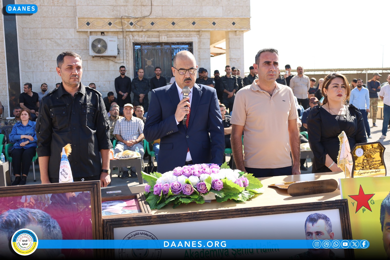 باسم الإدارة الذاتية الديمقراطية لإقليم شمال وشرق سوريا، نتوجه أولاً بتحية إجلال وإكبار لروح الشهيد نور الدين صوفي، الذي حملت هذه الدورة اسمه، ولجميع شهداء الحرية الذين بفضل تضحياتهم نمضي اليوم بخطى ثابتة في بناء مؤسساتنا وتطوير قدراتها وإمكاناتها.