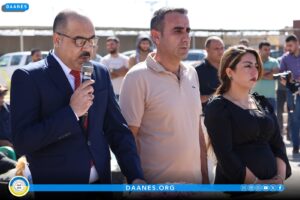 ألقى الرئيس المشترك للمجلس التنفيذي في الإدارة الذاتية الديمقراطية لإقليم شمال وشرق سوريا، حسين عثمان، كلمة خلال مراسم تخريج دورة الشهيد نور الدين صوفي للضابطة الجمركية التي نظمتها الإدارة العامة للجمارك في الإدارة الذاتية، وجاء في الكلمة.
