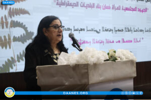 وخلال المؤتمر ألقت، الرئيسة المشتركة لمجلس الشعوب الديمقراطي في الإدارة الذاتية الديمقراطية، السيدة سهام قريو كلمة باسم منسقية المرأة في الإدارة الذاتية لإقليم شمال وشرق سوريا.