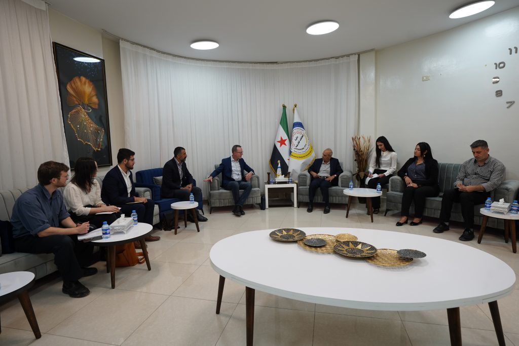 زار وفد أسترالي برئاسة السيد ديفيد شوبريدج عضو مجلس الشيوخ الأسترالي، والوفد المرافق له، مقر دائرة العلاقات الخارجية للإدارة الذاتية في قامشلو، وذلك في إطار جولة ميدانية للاطلاع على الواقع السياسي والاجتماعي والإنساني في المنطقة.