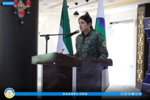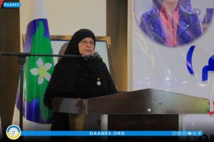 وألقت والدة الشهيدة هفرين خلف، سعاد مصطفى، كلمة عبَّرت فيها عن فخرها بمسيرة ابنتها التي ناضلت من أجل ترسيخ قيم السلام والعدالة الاجتماعية.