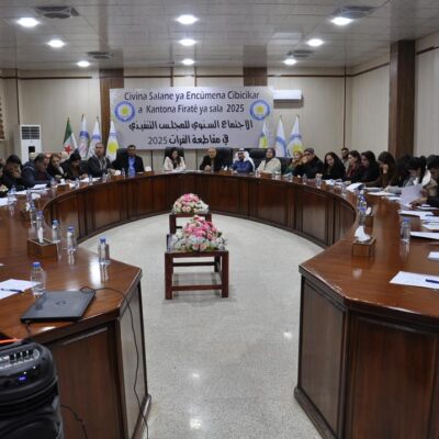 Sereke Cizîr 19 Jan Malbatên DAIŞ`î hewl dan ji Kampa Holê birevin Read More 15 Jan Ji bo piştgiriya Berxwedana Şêx Meqsûd û Eşrefiyê li Hesekê meşeke girseyî hat li dar xistin Read More 15 Jan Rêveberiya Xweser tev li meşa ji bo bîranîna şehîdên Berxwedana Şêx Meqsûd û Eşrefiyê bû Read More 13 Jan Şandeyek ji Rêveberiya Xweseriya beşdarî merasîma oxirkirina şehîdên berxwedana Şêx Meqsûd û Eşrefiyê bû Read More 13 Jan Şandeyek ji Rêveberiya Xweser beşdarî xwepêşandanekê li Hesekê bû Read More 11 Jan Rêveberiya Xweser ji bo şermezarkirina binpêkirinên li Şêx Meqsûd û Eşrefiyê beşdarî meşa girseyî li Reqayê bû Read More 08 Jan Rêveberiya Xweser beşdarî meşa girseyî yê ji bo êrîşên li ser taxên dorpêçkirî yên Helebê bû Read More 05 Jan Meclisa Rêveber a Kantona Firatê civîna xwe ya salane lidar xist û bi gelek encaman bidawî bû Read More 05 Jan Li Tebqayê 2’emîn Festîvala Stranan a Neteweyî hate li dat xistin Read More 05 Jan Rêveberiya Giştî ya Trafîkê ya Herêma Bakur û Rojhilatê Sûriyeyê xebatên xwe yên sala 2025’an dinirxîne Read More 123