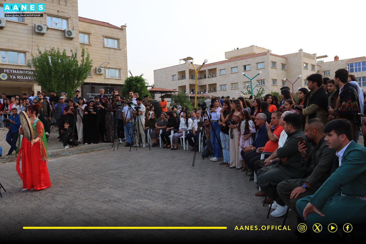 Di şahiyê de, hevserokê Desteya Çandê ya Rêveberiya Xweseriya Demokratîk a Herêma Bakur û Rojhilatê Sûriyeyê Murhaf El-Fehed axivî û tê de ked û xebata hunermend û pisporên peymangehê pesn da û bidawîbûna sala xwendinê li xwendekaran pîroz kir.