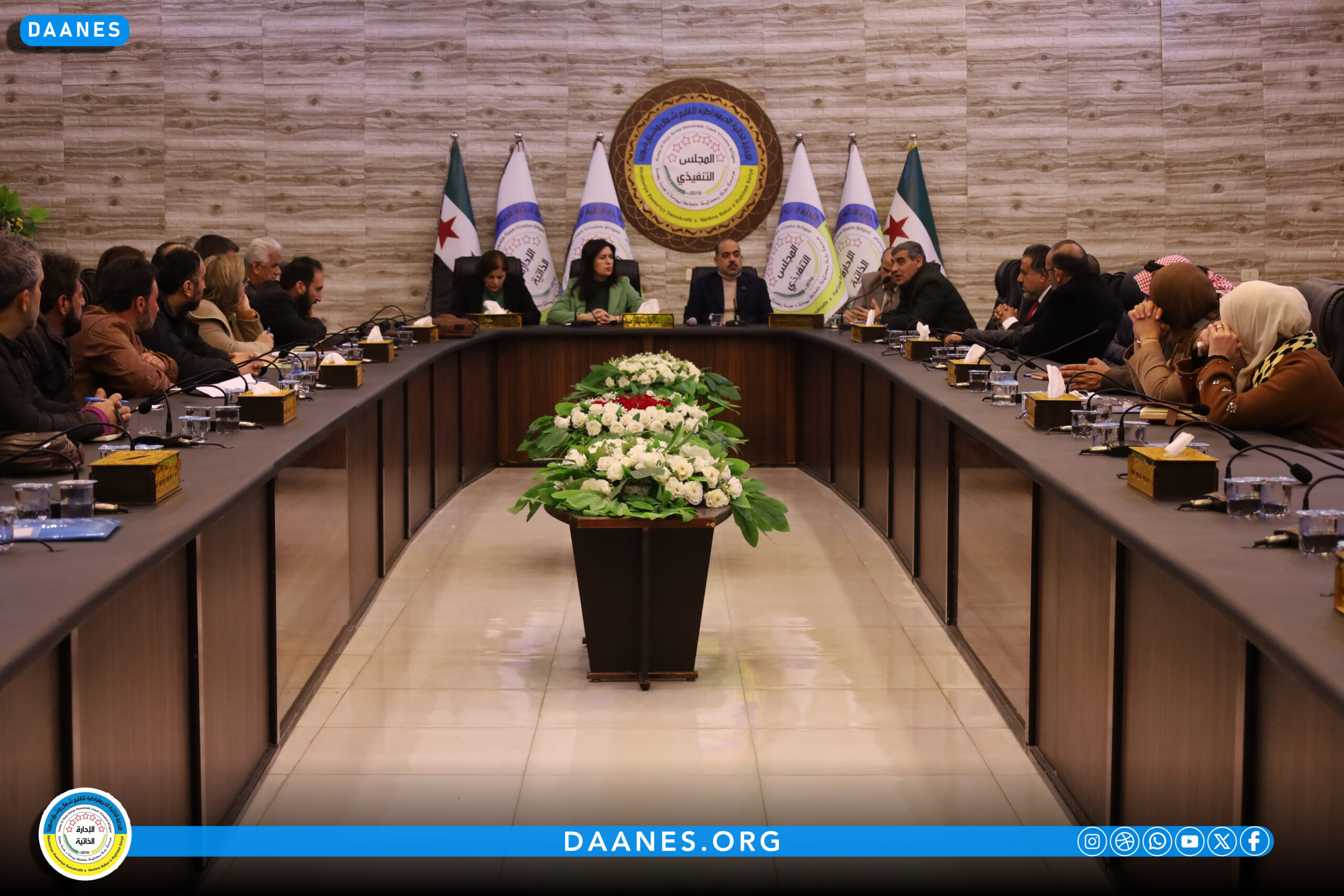 Hevserokên meclisên rêveber, nûnerên nivîsgehên darayî û gerîndeyên baceyan ên kantonên Herêma Bakur û Rojhilatê Sûriyê beşdarî civînê bûn.
