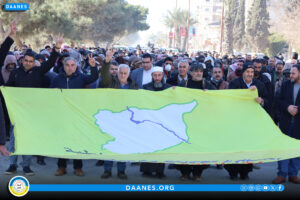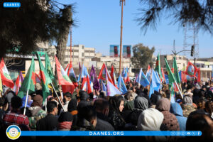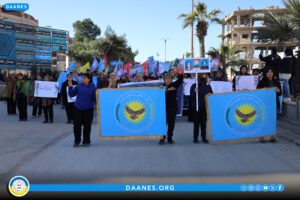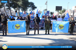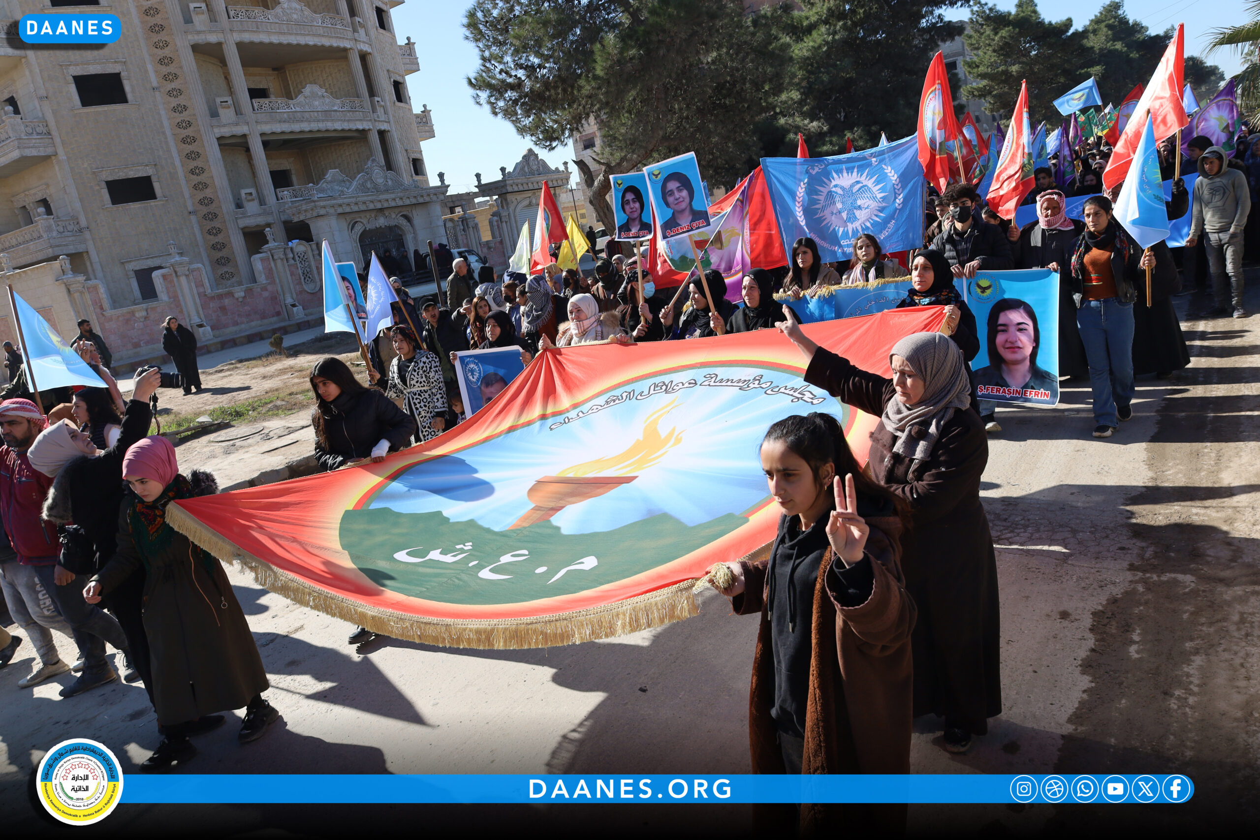 Şandeyek ji Rêveberiya Xweseriya Demokratîk a Herêma Bakur û Rojhilatê Sûriyê îro tev li meşa ku ji aliyê Meclisa Malbatên Şehîdan a Kantona Reqayê ve hate lidarxistin, bû. Meş ji bo bîranîna şehîdên Berxwedana Şêx Meqsûd û Eşrefiyê hate idarxistin.