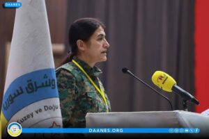 Her wiha Endama Fermandariya YPJ`ê Rohilat Efrîn jî axivî, lidarxistina kongre pîroz kir û hêvî kir ku ev partî roleke erênî di xurtkirina pireyên biratî û hezkirina di navbera pêkhateyên Sûriyê de, bilîze.