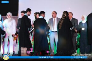 Desteya Hevserokatiya Meclisa Rêveber a Rêveberiya Xweser a Bakur û Rojhilatê Sûriyê, hevserokatiya Meclisa Zanîngehên Bakur û Rojhilatê Sûriyê, hevserokatiya Zanîngeha El-Şerq, nûnerên tevger jin, malbatên şehîdan û xwendekarên derçûyî, beşdarî merasîma derçûnê bûn.