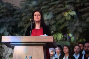 Di merasîma derçûnê de Hevseroka Zanîngeha El-Şerq Rena Ebdulqadir axivî, derçûna xwendekaran pîroz kir û tekez kir ku ev roj ne tenê hejmarek di rojnameya zanîngehê de ye lê belê qonaxeke dîrokî nemir di rêya akademiyê de ye û dê bimîne sembola serfirazî û afrîneriyê.